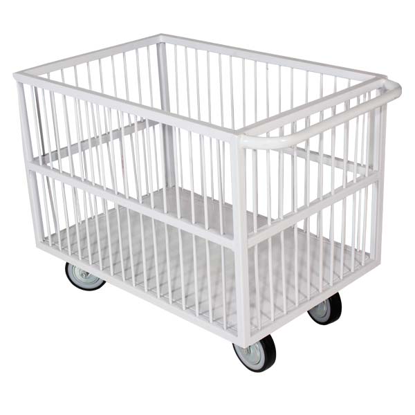 Size : 900x600x750(H) mm with wheels having sheet on two sides & steel bar on remaining two sides with a handle on one side duly powder coated.